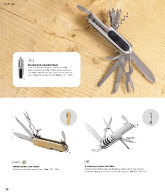 Bamboo pocket knife with key ring, 9 pieces. Size: 9 × 2,5 × 1,8 cm Stainless steel pocket knife with seven functions. Including: corkscrew, cross-head