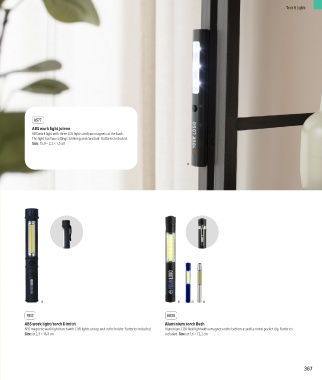 ABS magnetic work light/torch with COB lights on top and in the holder. Batteries included. Aluminium COB flashlight with a magnet on the bottom as well a metal pocket clip. Batteries