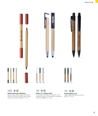Bamboo endless pencil and ballpen. One side with   Bamboo ballpen with rubber tip for capacitive screens   Bamboo ballpen with plastic parts. Blue ink.