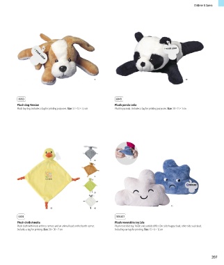 Plush toy dog. Includes a tag for printing purposes. Size: 17 × 12 × 7,5 cm Plush toy panda. Includes a tag for printing purposes. Size: 18 × 11 × 1 cm