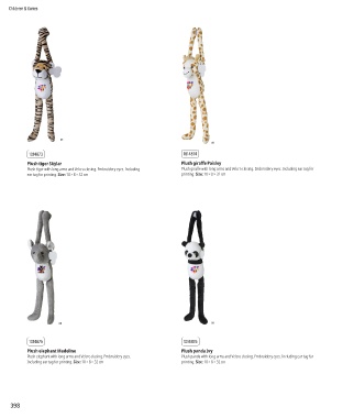 Plush tiger with long arms and Velcro closing. Embroidery eyes. Including Plush giraffe with long arms and Velcro closing. Embroidery eyes. Including ear tag for