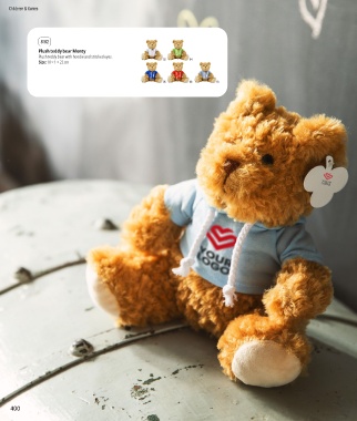 Childeren & Games 8182 Plush teddy bear Monty Plush teddy bear with hoodie and stitched eyes. 02 04 Size: 18 × 1 × 22 cm 05 08 18 03 09 09 17 400 401
