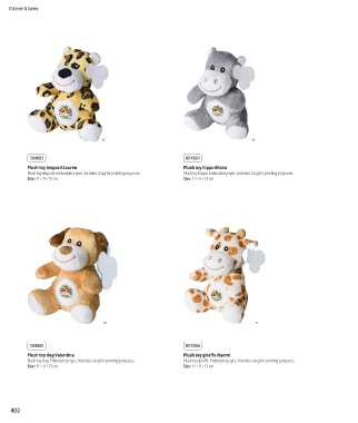 Plush toy leopard. Embroidery eyes. Includes a tag for printing purposes. Plush toy hippo. Embroidery eyes. Includes a tag for printing purposes.