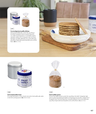 Tin can with Dutch pattern, or silver coloured, to be used for Dutch waffles; with a white Delicious Dutch waffles (8) with a caramel-like, syrup filling in the middle. Packaged per eight