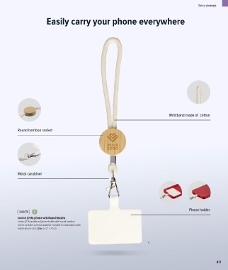 Cotton (D16) wristband phone holder with round bamboo
