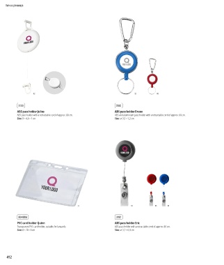 ABS pass holder with a retractable cord of approx. 80 cm. ABS and aluminium pass holder with a retractable cord of approx. 60 cm.