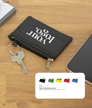 Various giveaways 01 11 01 04 06 08 23 01 05 01 9124 Nylon (70D) key wallet Sheridan Nylon key wallet with metal ring and zipper. Size: 11 × 7 × 0,7 cm 414 415