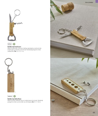 Bamboo multitool with 3 functions, including a metal keyring. Functions include