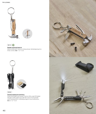 Bamboo multitool with 7 functions, including a keyring. Individually packaged in a