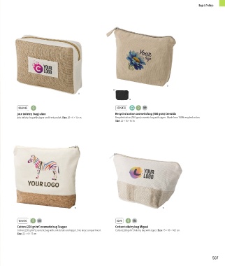 Cotton (220 gr/m ) cosmetic bag with cork details and zipper. One large compartment. Cotton (280 gr/m ) toiletry bag with zipper. Size: 15 × 10 × 14,5 cm