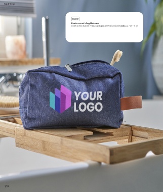 Bags & Trolleys 1103672 Denim cosmetic bag Marianne Denim cosmetic bag with PU details and zipper. Short carrying handle. Size: 22,5 × 9,5 × 11 cm 07 08 19 23 01 23 13 05 07 18 21 510 511