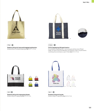 Nonwoven (80 gr/m ) laminated shopping bag. Size: 44,5 × 11 × 35 cm Denim (280 gsm) shopping bag with 15-centimeter gussets and long canvas (280 gsm)