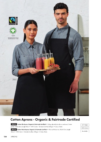 PR112 Cotton Bib Apron, Organic & Fairtrade Certified Sliding adjustable buckle on neckband, Centre 40° Wash PR120 Recycled Polyester and Cotton Bib Apron, Organic & Fairtrade Certified Two