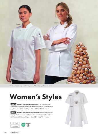 PR671 Women’s Long Sleeve Chef’s Jacket Ten button hole wrap over