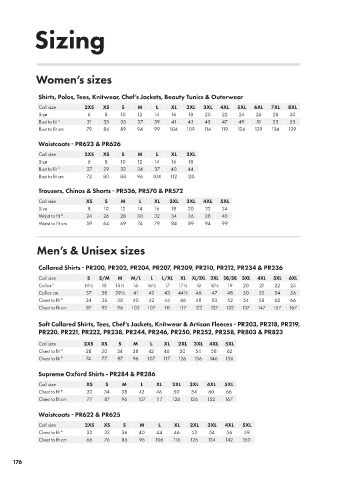 Shirts, Polos, Tees, Knitwear, Chef’s Jackets, Beauty Tunics & Outerwear Chest to fit " 35 38 40 43 45 47 50 53 55