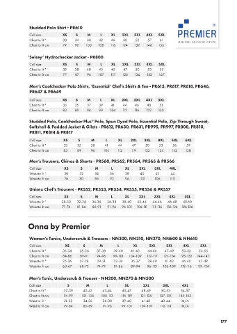 Shirts, Polos, Tees, Knitwear, Chef’s Jackets, Beauty Tunics & Outerwear Chest to fit " 35 38 40 43 45 47 50 53 55