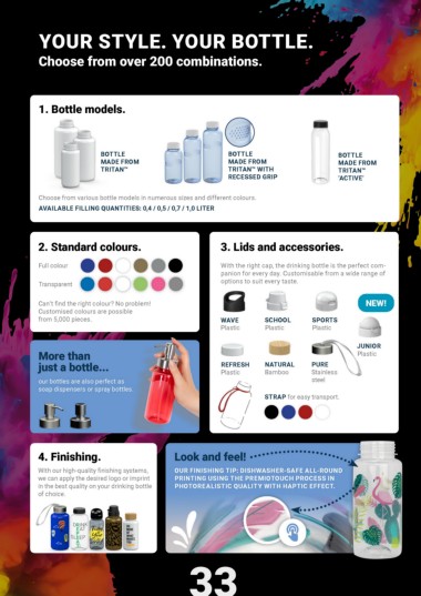 Full colour With the right cap, the drinking bottle is the perfect com-