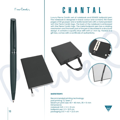Luxury Pierre Cardin set of notebook and DENISE ballpoint pen. Here is the elegant Pierre Cardin roller that every fashion-conscious