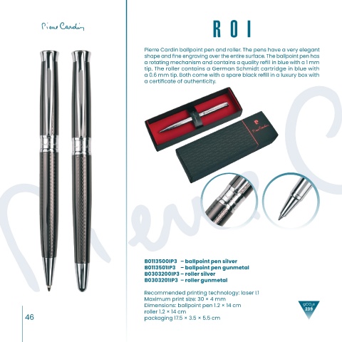 B0303201IP3 – roller gunmetal B0408901IP3 – a set of ballpoint and roller, gunmetal