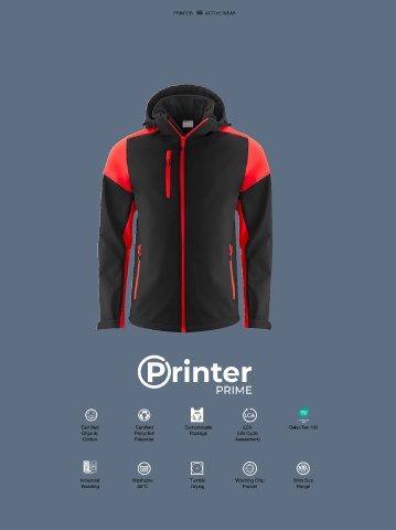 PRINTER 55 ACTIVE WEAR Certified Certified Compostable LCA Oeko-Tex 100 Organic Recycled Package (Life Cycle Cotton Polyester Assessment) Industrial Washable Tumble Washing Chip Wide Size Washing 60°C Drying Pocket Range
