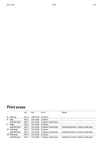 with QR Code 36 × 7 1,41 × 0,28 2 colours + white layer Soft touch version: 1 colour + white layer