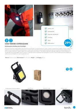 Introducing the REEVES-SUPERSQUARE: The multi-functional torch that‘s an essential addition to any kit. Compact, convenient and powerful, it boasts a striking COB
