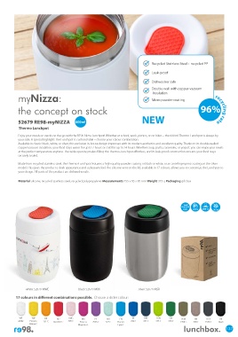 model. This gives the product a sleek appearance and a pleasant feel. The silicone vent on the lid, available in 17 colours, allows you to customize the Lunchpot to
