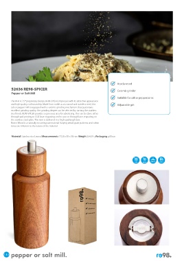 salt or pepper mill is equipped with a ceramic grinding mechanism that guarantees