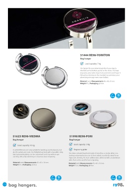 also for jackets and coats. The foldable bag hook with a beautiful, shiny The silver-coloured bag hook made of metal has a circular, white con-
