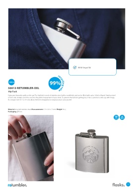 Enjoy your favourite spirits on the go. The hip flask is made of stainless steel with a matt finish and can be filled with up to 150ml of liquid. Stainless steel