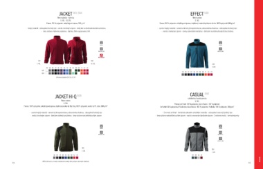 Fleece, 100 % polyester, antipilingová úprava, doplnkový materiál: Rip Stop, 100 % polyamid, vnútorný PU záter, 360 g/m 2 Softshell: 96 % polyester, 4 % elastan; micro fleece - 100 % polyester, Podšívka: 100 % polyester, 350 g/m 2