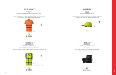 • odev s vysokou viditeľnosťou • vonkajšia strana fluorescenčný polyester • vnútorná strana bavlnená • rýchloschnúci fluorescenčný materiál • vystužené 2 predné panely • prešívaný, zľahka prehnutý šilt