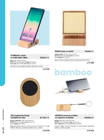 drevo • Š60 x V79 x H19 mm Stojan na telefón z bambusu s bločkom lepiacich papierikov (50 ks).