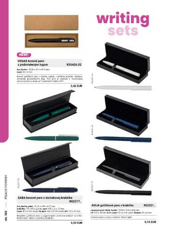 str. 166 Elegantné guľôčkové pero s pogumovaným povrchom mäkkým na dotyk. UV 120 x 35 mm alebo Laser 35 x 6 mm alebo Tampón 35 x 6 mm