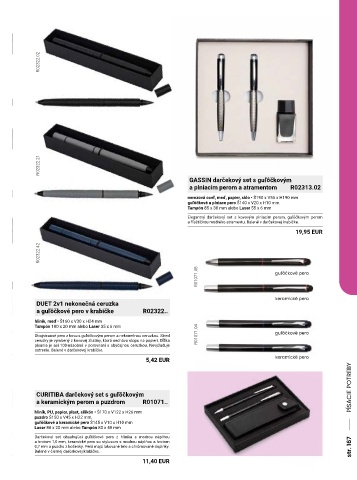 0,7 mm a puzdro z koženky. Perá majú lakované telo a chrómované doplnky. str. 167