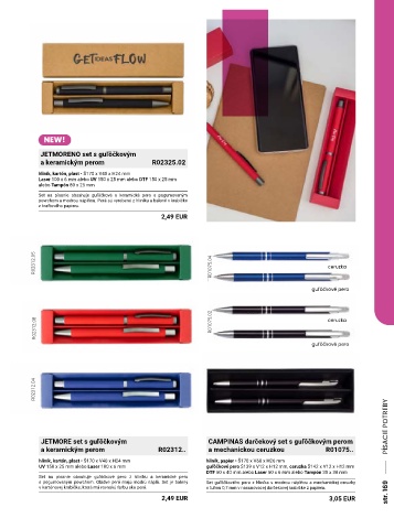 v kartónovej krabičke, ktorá má rovnakú farbu ako perá. s tuhou 0,7 mm v nasunovacej darčekovej krabičke z papiera. str. 169