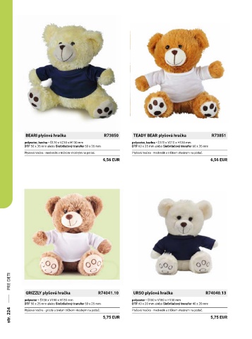 str. 224 Plyšová hračka - grizzly s bielym tričkom vhodným na potlač. 5,75 EUR Plyšová hračka - medvedík s tričkom vhodným na potlač. 5,75 EUR