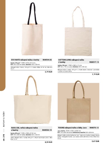 str. 278 Veľká nákupná taška z bavlny 280 g/m² s dlhými bavlnenými ušami. Šírka bavlny. Ekologická tkanina Juco dodáva taške jedinečný vzhľad. Šírka klina