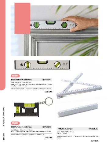 str. 296 Prívesok na kľúče s vodováhou s magnetom a 2 libelami 0˚, 90˚. 2,55 EUR Tradičný skladací meter 2 m. Mierka v cm. Možnosť plnofarebnej (UV)