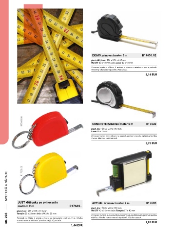 str. 298 Prívesok na kľúče z plastu a kovu so zvinovacím metrom 2 m. Mierka Zvinovací meter 2 m s vodováhou, zápisníkom a guľôčkovým perom s modrou