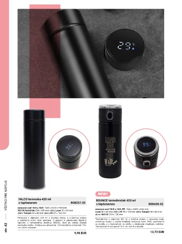 VŠETKO PRE NÁPOJE  FALCO termoska 420 ml    R08257.02    BOUNCE termohrnček 420 ml         R08438.02