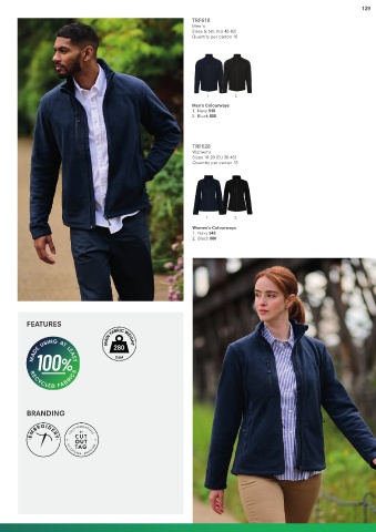 129 TRF618 Men ’s Sizes S-3XL (EU 48-62) Quantity per carton 16 1. 2. Men’s Colourways 1. Navy 540 2. Black 800 TRF628 Women’s Sizes 10-20 (EU 36-46) Quantity per carton 16 1. 2. Women’s Colourways 1. Navy 540 2. Black 800 FEATURES BRANDING