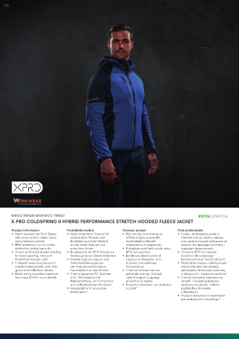 • 2 zipped lower pockets and 1 Stretcheinfassungen an e polsini con apertura • Rozkładany kaptur z elastycznym
