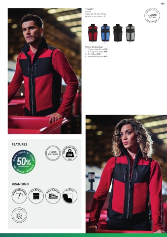 195 TRA907 Unisex Sizes XS-3XL (EU 46-62) Quantity per carton 16 1. 2. 3. 4. Unisex Colourways 1. Classic Red/Black 51P 2. Strong Blue/Navy N5F 3. Ash/Black 61G 4. Mineral Grey/Ash 00G FEATURES BRANDING
