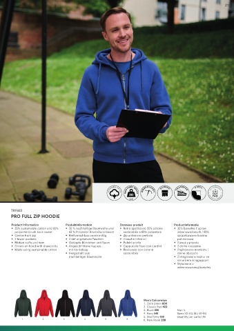 • Grown on hood with drawcords • Angeschnittene Kapuze • Cappuccio fisso con cordini • 2 dolne kieszenie