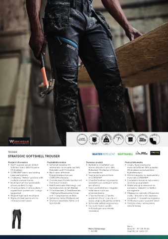 • Warm backed woven stretch • Softshell-Gewebe mit • Pantalone in Softshell con • Ciepły, tkany elastyczny