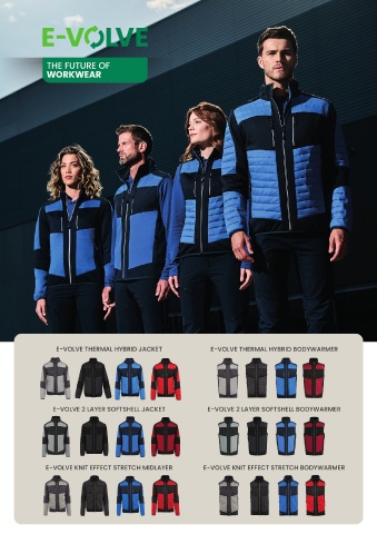 E-VOLVE THERMAL HYBRID JACKET E-VOLVE THERMAL HYBRID BODYWARMER E-VOLVE 2 LAYER SOFTSHELL JACKET E-VOLVE 2 LAYER SOFTSHELL BODYWARMER E-VOLVE KNIT EFFECT STRETCH MIDLAYER E-VOLVE KNIT EFFECT STRETCH BODYWARMER