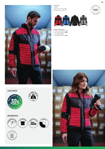 367 TRA563 Unisex Sizes XS-3XL (EU 46-62) Quantity per carton 12 1. 2. 3. 4. Unisex Colourways 1. Classic Red/Black 51P 2. Strong Blue/Navy N5F 3. Ash/Black 61G 4. Mineral Grey/Ash 00G FEATURES BRANDING