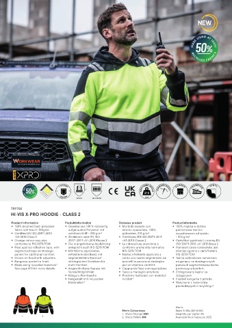 • Orange colour-way also 20471:2013 +A1:2016 Klasse 2 +A1:2016 Classe 2 • Certyfikat zgodności z normą EN