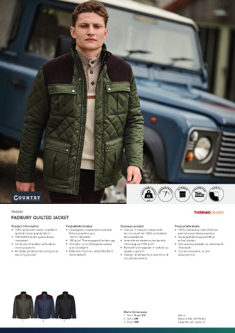 • 100% polyester water repellent • Gesteppte, wasserabweisende • Giacca in tessuto trapuntato • 100% pikowana hydrofobowa